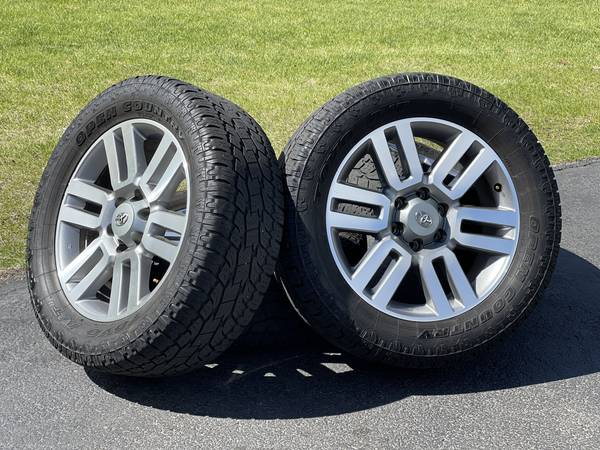 Set of OEM 20” Toyota wheels in excellent, like-new condition, originally from a Tacoma. These factory rims (20x7) are wrapped in Toyo Open Country All-Terrain tires, size 275/55R20, with plenty of tread remaining.