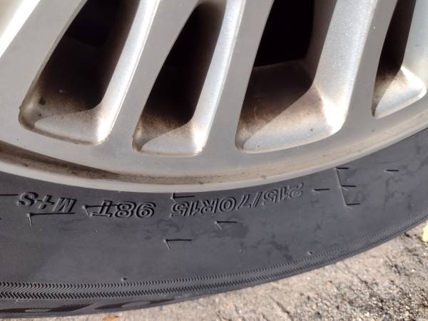 WHEELS ARE 15" x 7" WITH BRIDGESTONE 215/70R15 TIRES WITH LOTS OF TREAD LEFT, CENTER CAPS INCLUDED AS WELL.