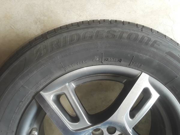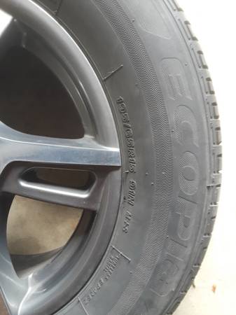 Bridgestone Ecopia EP 422 tires with about 60% tread. Wheels in excellent condition with TPMS sensors.
