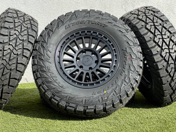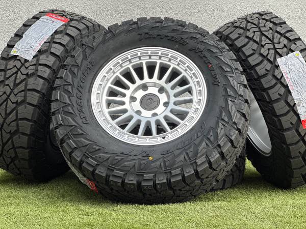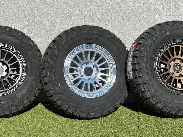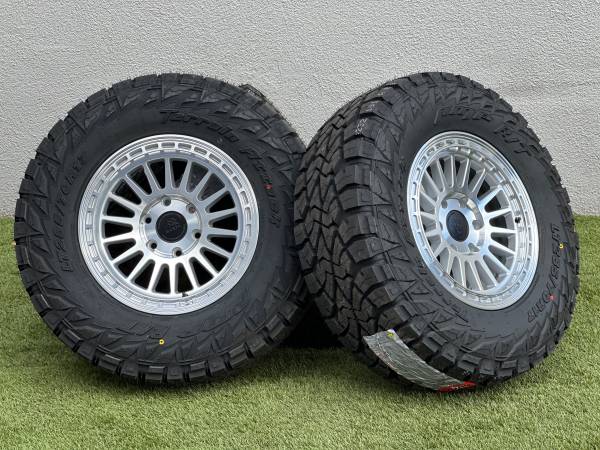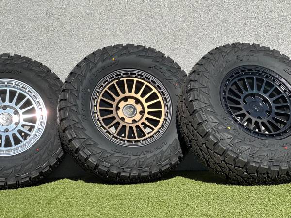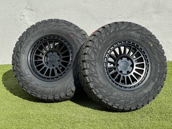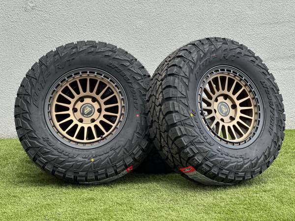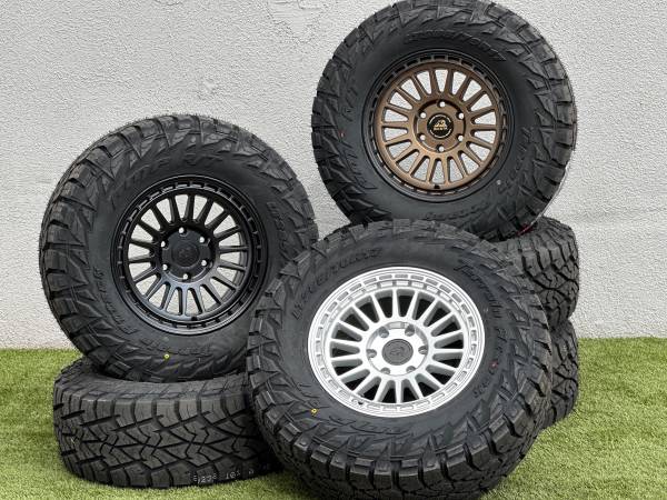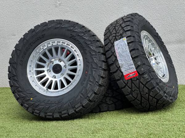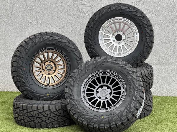 Brand new 17” Basta Rotary Forged Wheels RF3, available in Bronze, Black, or Polished Silver, wrapped in AMP Terrain Attack R/T LT285/70R17 tires.