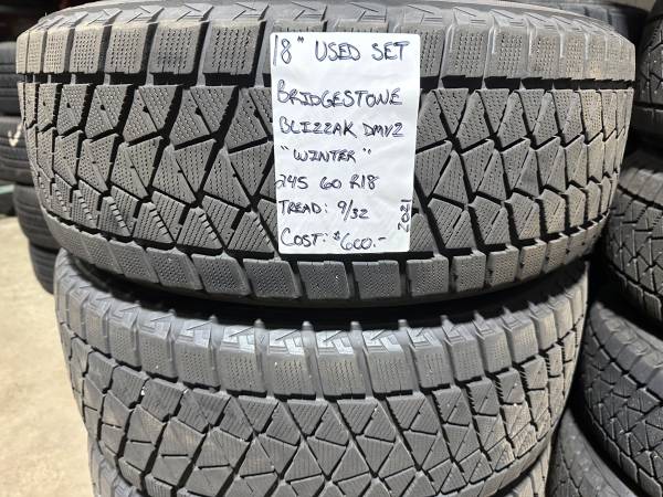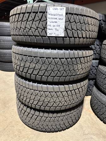 This listing is for a set of 4 used Tires This set is priced at: $600 Bridgestone Blizzak DMV2 Winter Tires Size: 245/60R18 245/60/18 245 60 R18 Tread depth: 9/32nds DOT: 2021 Installation is...