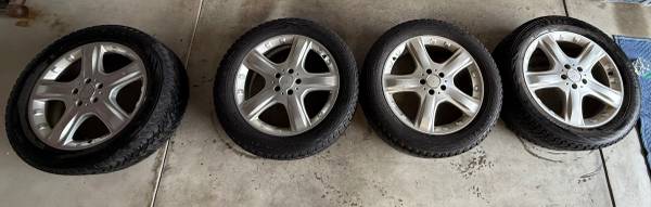 For sale is a set of 4 Mercedes OEM wheels mounted and balanced with Nokian Hakkapeliitta R3. Purchased 2 years ago, only for winter use, and over 80% tread remaining. We sold our 2013 ML350, but these wheels will fit a range of Mercedes ML350 model years. According to quick google search, these 2013 ML350 wheels and tires will fit ML350s from 2012–2015, and also GLE 350/400 models (2016–2019), as long as the buyer confirms their trim supports that wheel size.