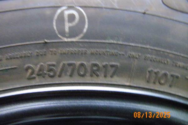 1 new rim and tire for spare came off tacoma 2025, tire 245-70r17 toyo tires, rim 17x7 price is firm call