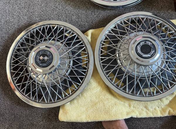 Pair of vintage crossed flags wire hubcaps. Inside measures 13 1/2", outside overall measures 15". One has the flags the other one has the border but no flags. Pickup in Lakewood. $30 OBO. Please don’t ask if available. If you see the listing, they are available.