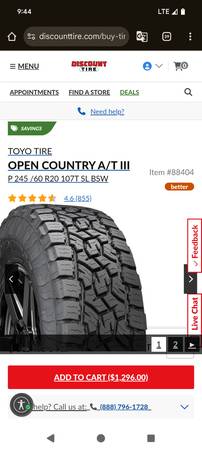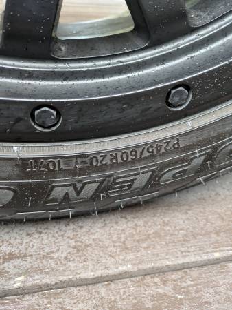 245 60 20 Toyo Open Country AT3 tires near new at 10-12/32 so that's about 85% of the 13/32 when brand new! Best tire on the market, great for the coming snow and ice in winter!!!!