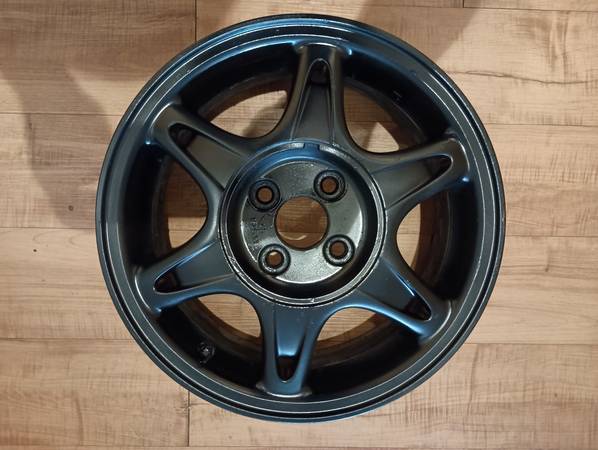 15x6 jj , aluminum alloy . 4x100 bolt pattern . Size of Mini , Mazda , Hyundai , Kia , Nissan , Acura , Toyota , Honda , etc. Seven 2 zero 2 4 one 3 2 2 2 . text .