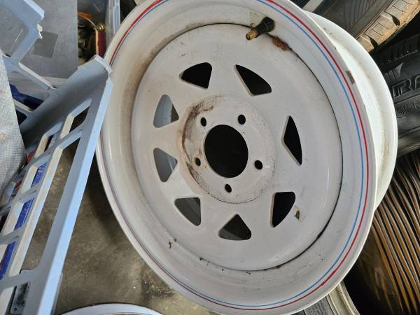 1 15 INCH WHITE SPOKE RIM 8 DIAMOND HOLES LIKE NEW $ 50