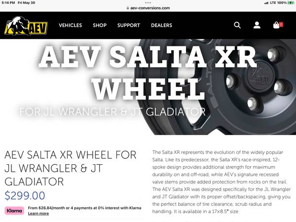 For Sale; Set of 5 AEV Salta Wheels Wheels only 5X, very nice condition..