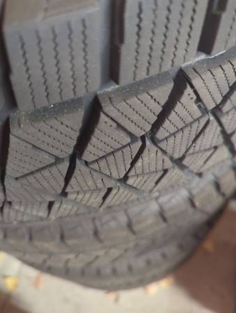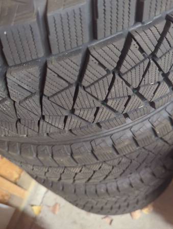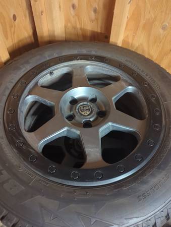 Set of 4 225/65R17 Bridgestone Blizzak DM-V2 tires mounted on LP Adventures LP3 17X8 5-110 ET38 rims. Tires used sparingly for two winter seasons, tons of tread left. Rims in excellent condition. Originally fitted on a 2014 Jeep Cherokee. Should also fit Chevrolet Equinox, Subaru Outback, Chrysler Town & Country, Dodge Grand Caravan, and others.