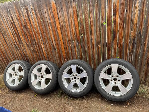 All four are mounted and balance with working tire pressure sensors. Front tires are Continental Contact 235/50/18 and the rear tires are Kumho Ecsta 245/50/18.