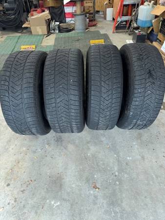 In addition, they come with Pirelli Scorpion Winter tires. Tires are staggered in size, 235 60 R18 and 255 55 R18. These wheels and tires were removed from a newer model Porsche Macan.