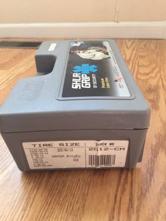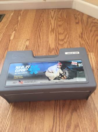 Shur-grip snow cable chains New never used! Comes with instructions and cross-links. Fits different sizes from 13”-14”and 15”inch wheels and tires!