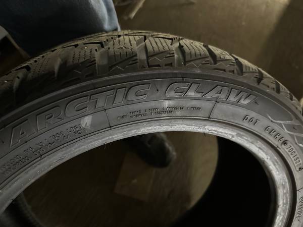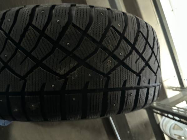 4 almost new studded artic cat Snow tires. 225/45R17 Used one season, maybe 3 months. 8mm tread left. Look like new $350.00.