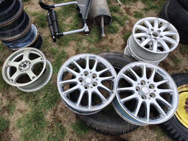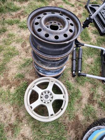 $100 set of 4 Black 🖤 Wheels.16" Bolt pattern may fit Ford Chevy Dodge, perhaps does not fit over brake caliper – use spacer. Unsure of Bolt spacing: $60 set of 2 custom wheels 16". $30 only 1...