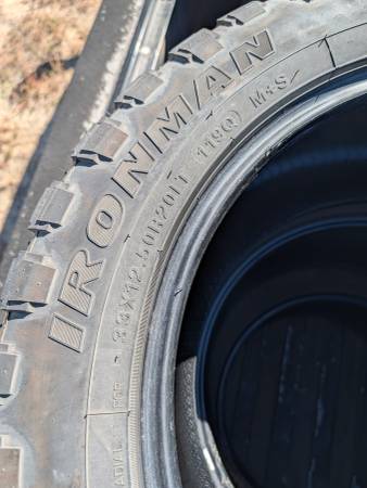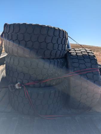 I have a good set of 33/12.50/20 12 PLY Mud tires little less than half tread. Don't need them anymore. In Strasburg come take a look at them 303-919-58 Five FOUR Call or text