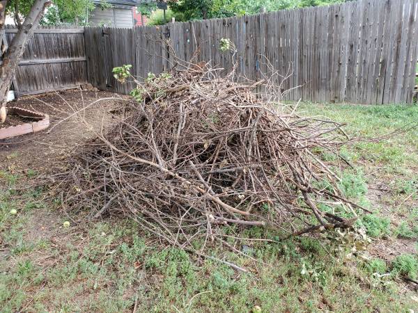 I've got a pile of apple tree branches that I'd love to get in someone's hands that can use them. I know a lot of people with smokers like to pick this stuff up. Though all that's left (the photo is old) is smaller, thinner branches. Good for crafting of backyard firepit / camping kindling.