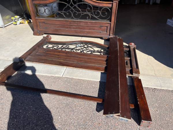 We have a used king bed frame that we do not need anyone. Someone else can enjoy this great furniture piece. Just needs slight refinishing and it will look awesome. Some scratches but basically in good shape. Property pick up only. Email for address and time.