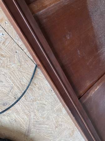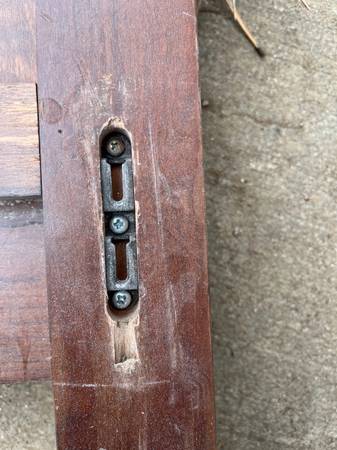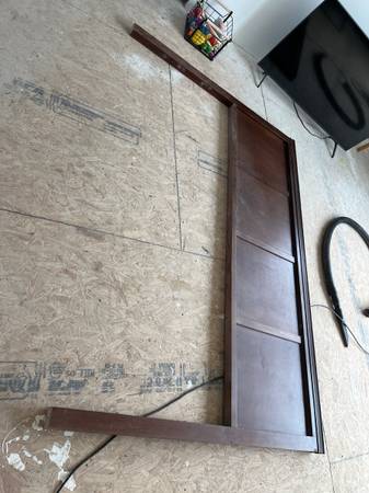 Free crate and barrel king bed frame Headboard, footboard and frame Needs a new coat of paint and two furniture brackets in picture