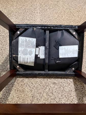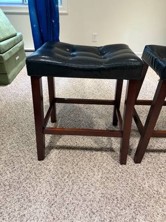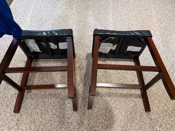 Two barstools, one of them is in good shape the other is sort of broken but can still be sat on fine. The cushion just got pushed in, maybe it's fixable for someone handy. Text only, if you see this...