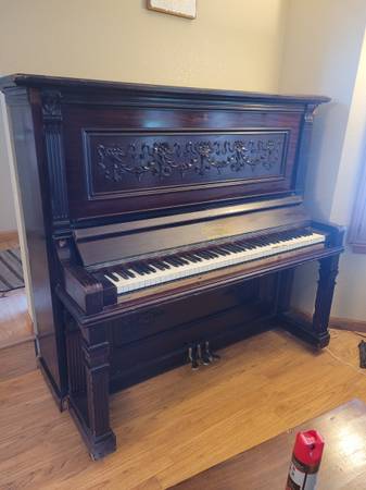 We have an antique piano left from the previous owners of the house. We were told it was the old Leadville saloon's piano. Here's your chance to own a little piece of Colorado history! Built in 1899, there is one key that doesn't play, but otherwise plays well. A couple dents and scratches, but what stories to tell!